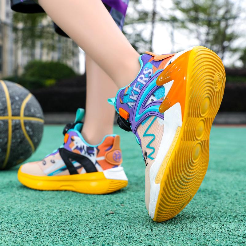 Профессиональные детские баскетбольные кроссовки Модные кроссовки с застежкой-крутилкой для детей Дышащие Нескользящие Баскетбольные спортивные кроссовки для мальчиков и девочек