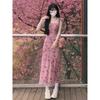 Розовое платье на бретелях с принтом роз женское осеннее новое элегантное ретро с квадратным вырезом темпераментное приталенное длинное платье