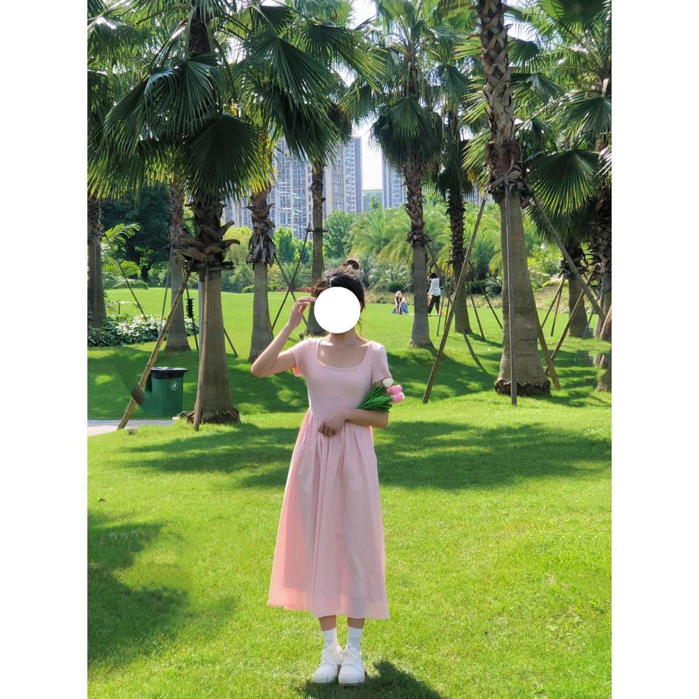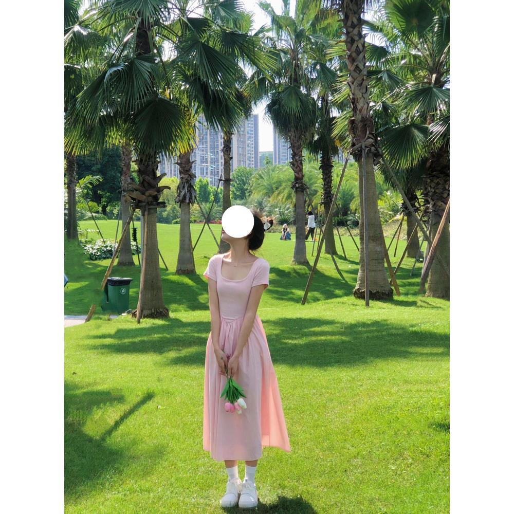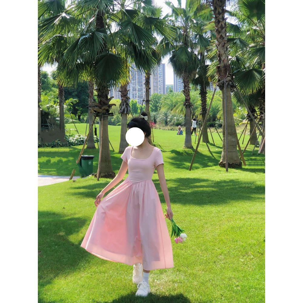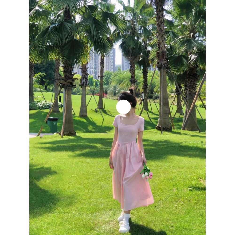 Платье в стиле академии лето новое плиссированное с высокой талией темперамент однотонное средней длины для детей
