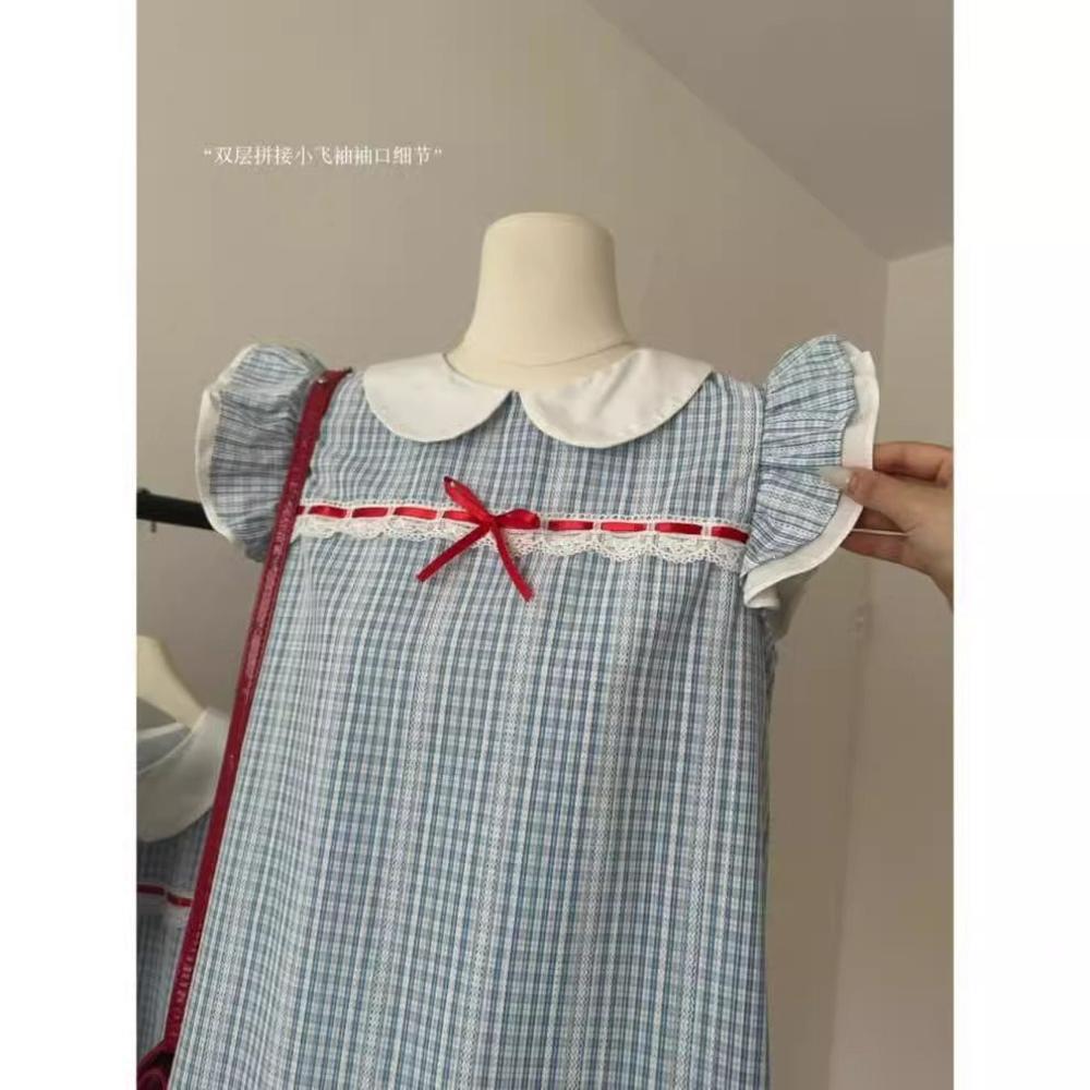Летнее платье с рукавами-крылышками в синюю клетку для женщин, маленькое летнее новое платье с кукольным воротником и короткой юбкой, суперкрасивое платье принцессы