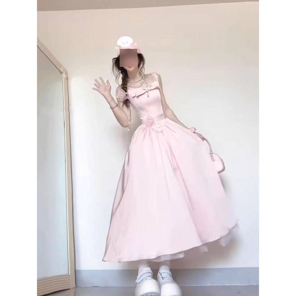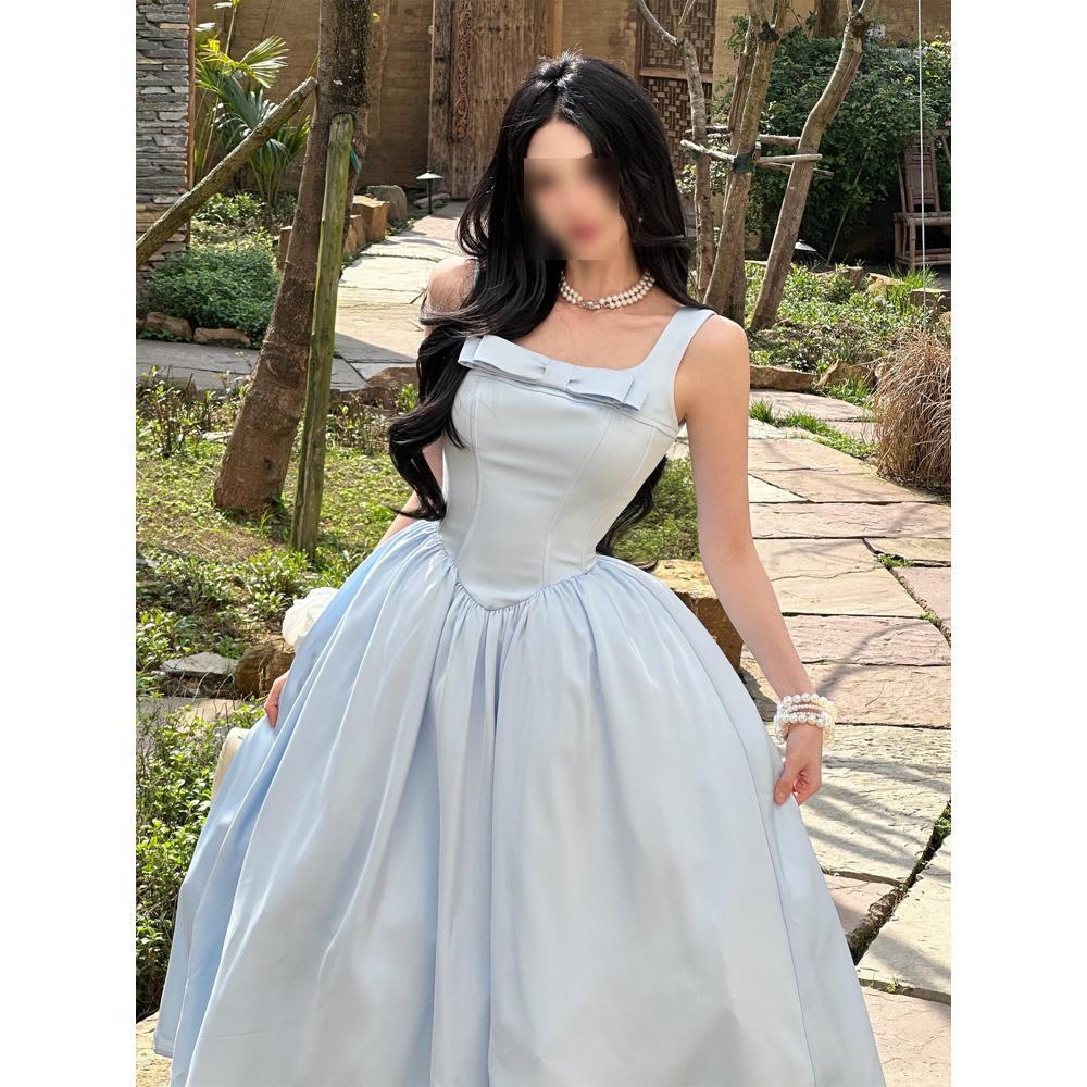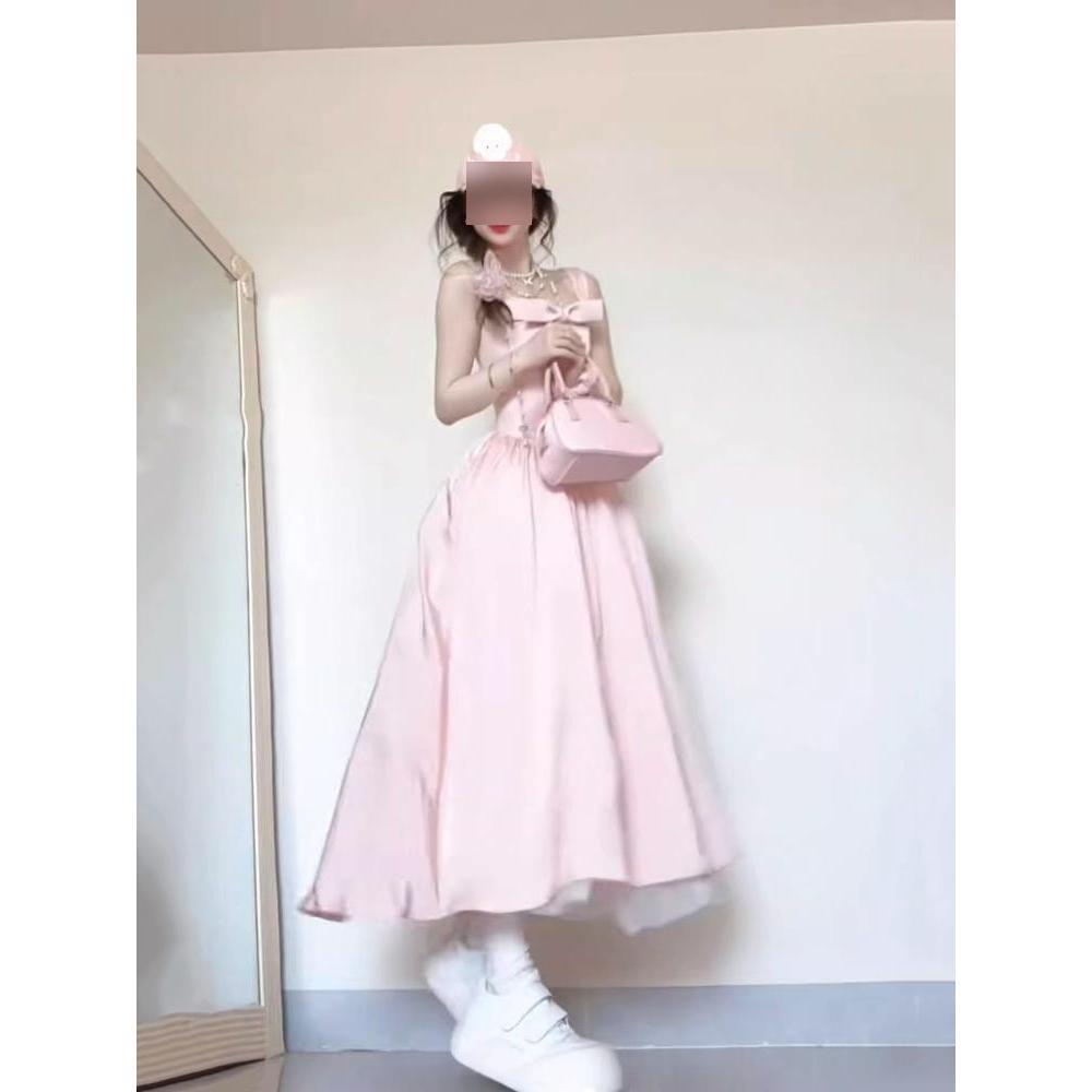 Уникальное и красивое платье-сарафан с бантом, летняя мода для девочки, темперамент, талия, длинная юбка