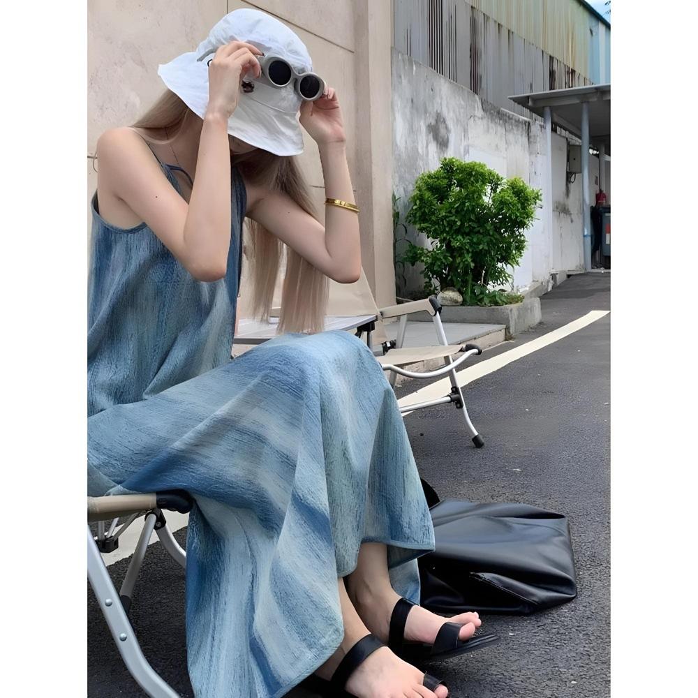 Женское летнее приморское свободное пляжное платье, праздничное ленивое длинное платье, ретро синее платье на бретелях с размытым принтом — купить товар онлайн с бесплатной доставкой по всему миру!