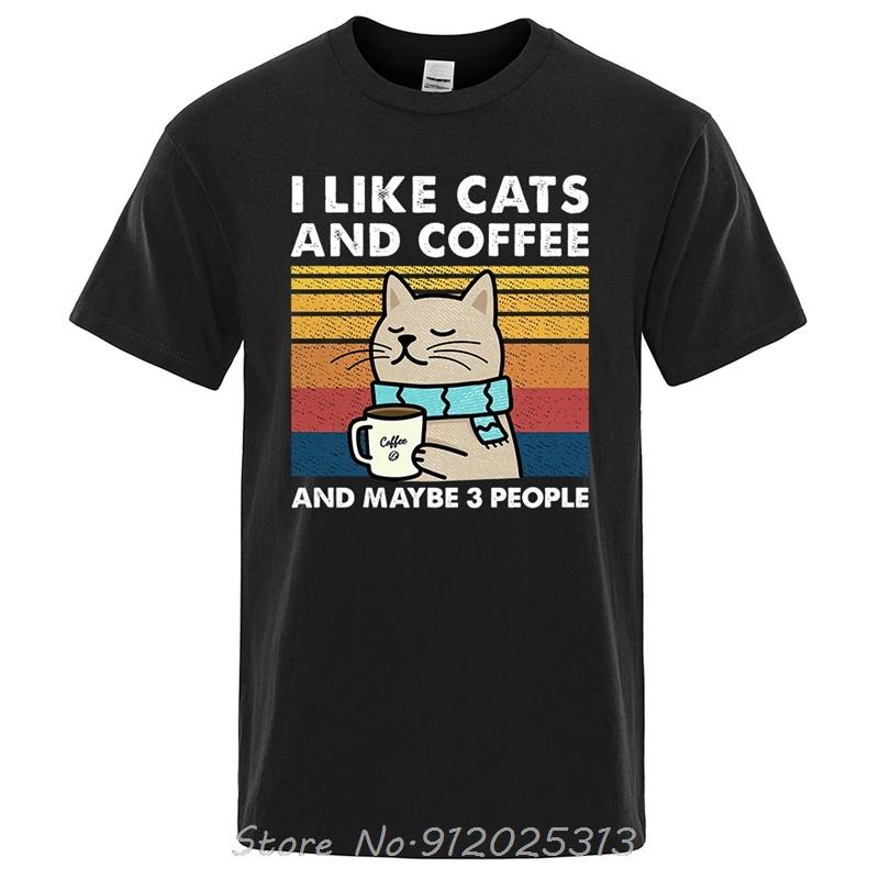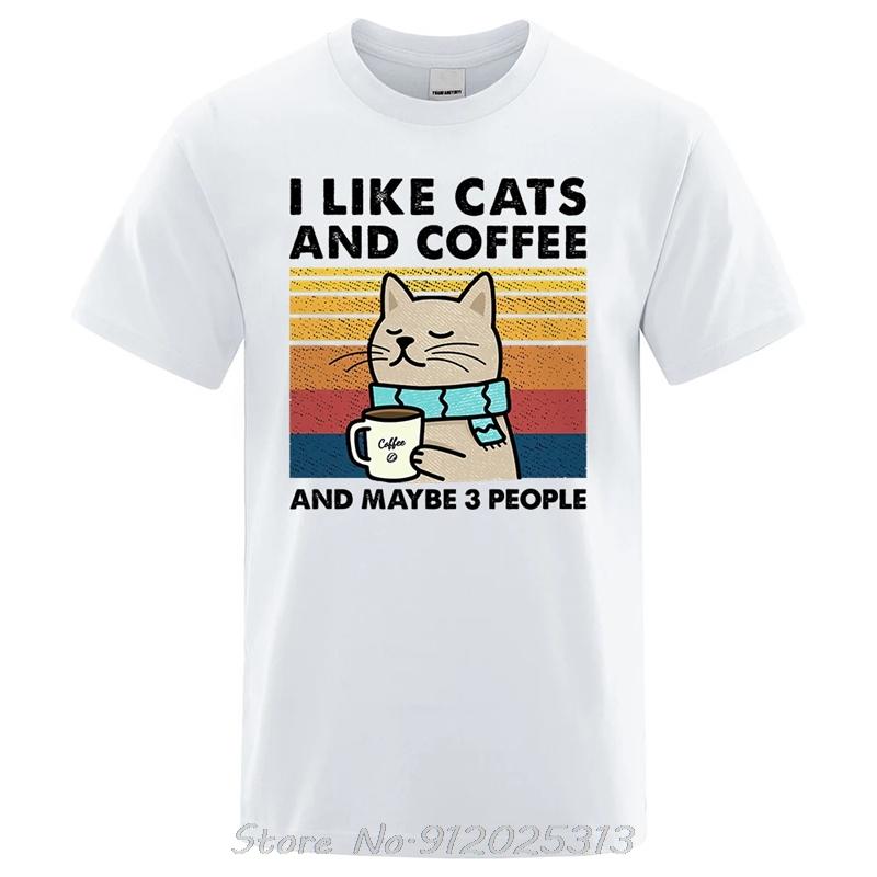 Я люблю кошек и кофе Уличная забавная футболка для мужчин Модная повседневная хлопковая футболка Хип-хоп футболки Унисекс футболка с круглым вырезом