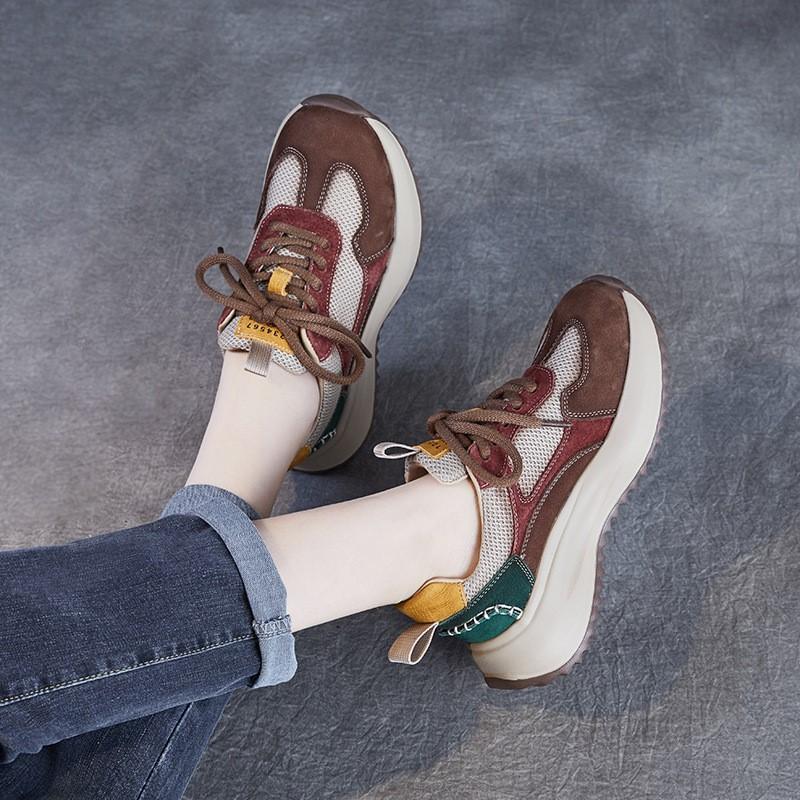 Johnature Сетчатая вставка Натуральная кожа Дышащие Женские Туфли Толстая подошва Смешанные цвета Повседневная Спортивная обувь