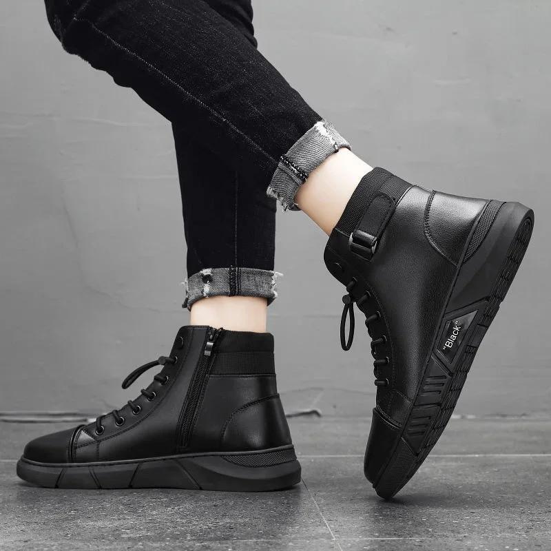 Мужские высокие мотоциклетные ботинки, модные черные кожаные ботинки, новые водонепроницаемые ботинки на платформе для отдыха на открытом воздухе, мужские ботинки класса люкс, дизайнерские