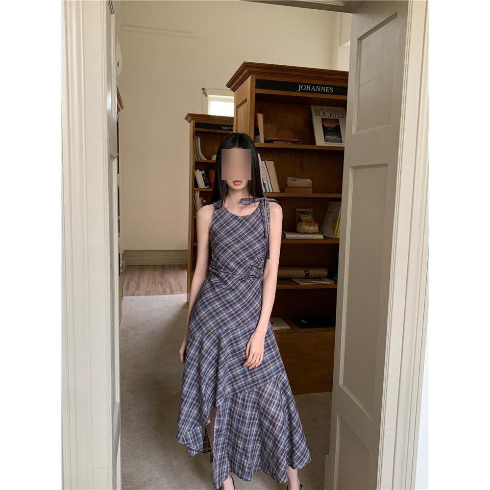 Американское винтажное клетчатое платье без рукавов женское летнее новое нишевое нерегулярное платье-жилет миди длины
