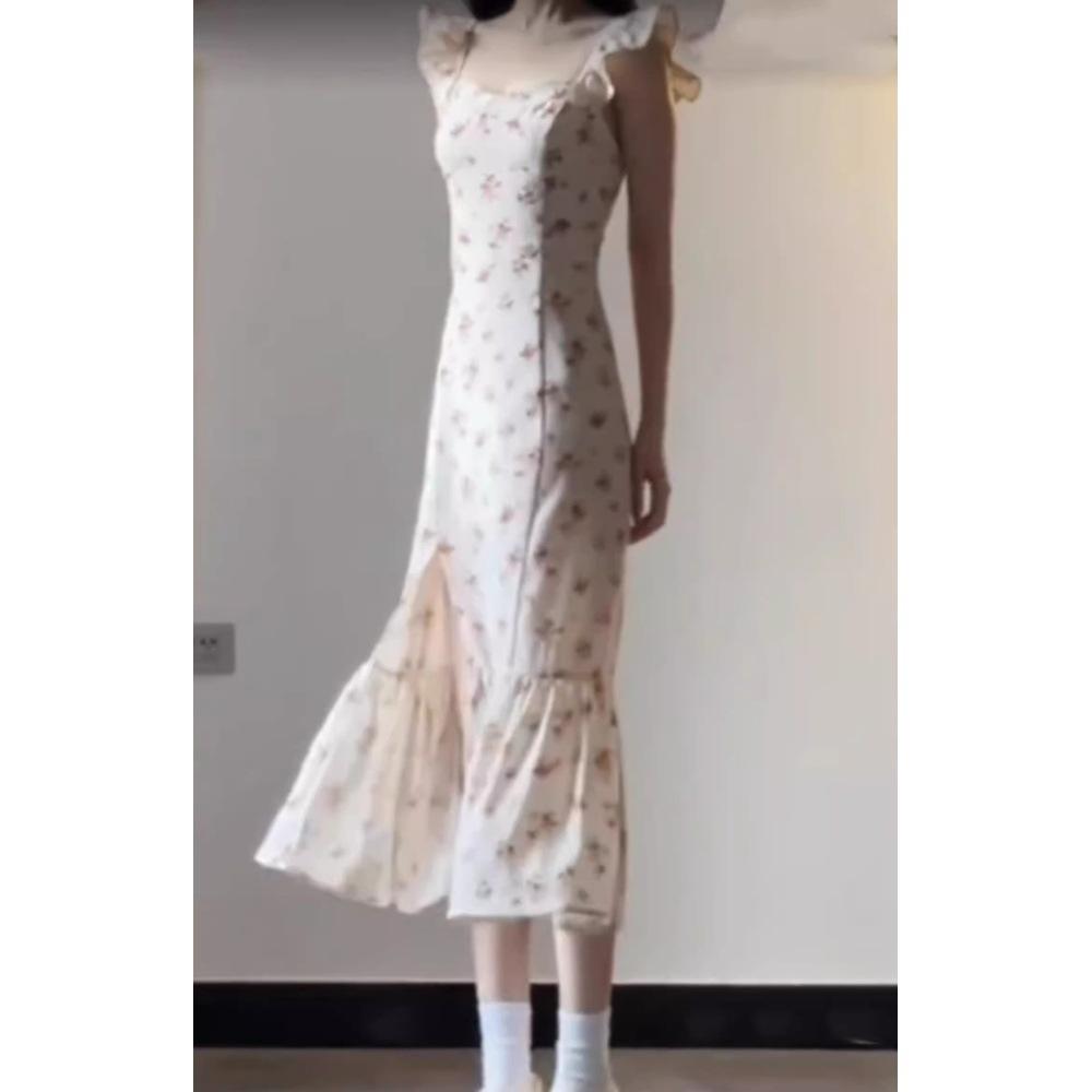Ретро платье-сарафан с цветочным принтом и рукавами сяофэй для детей, приталенное и тонкое, красивое длинное платье с разрезом на лето