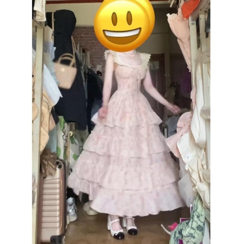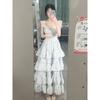Колледжский синий цветочный пышное платье женское летнее дофаминовое милое вышивка на бретелях платье-торт с талией