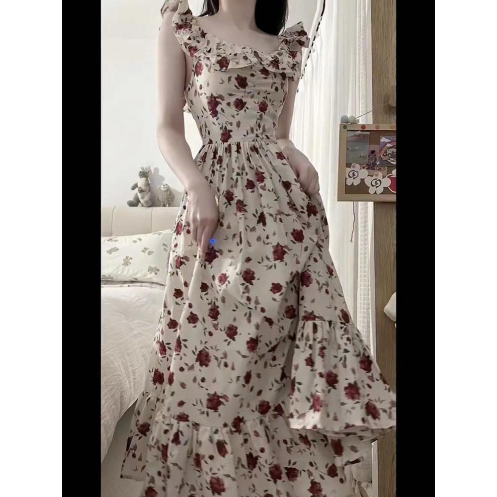 Милое и нежное цветочное платье с маленькими рукавами-крылышками, женское, с высокой талией, тонкая юбка, летнее платье средней длины, новое