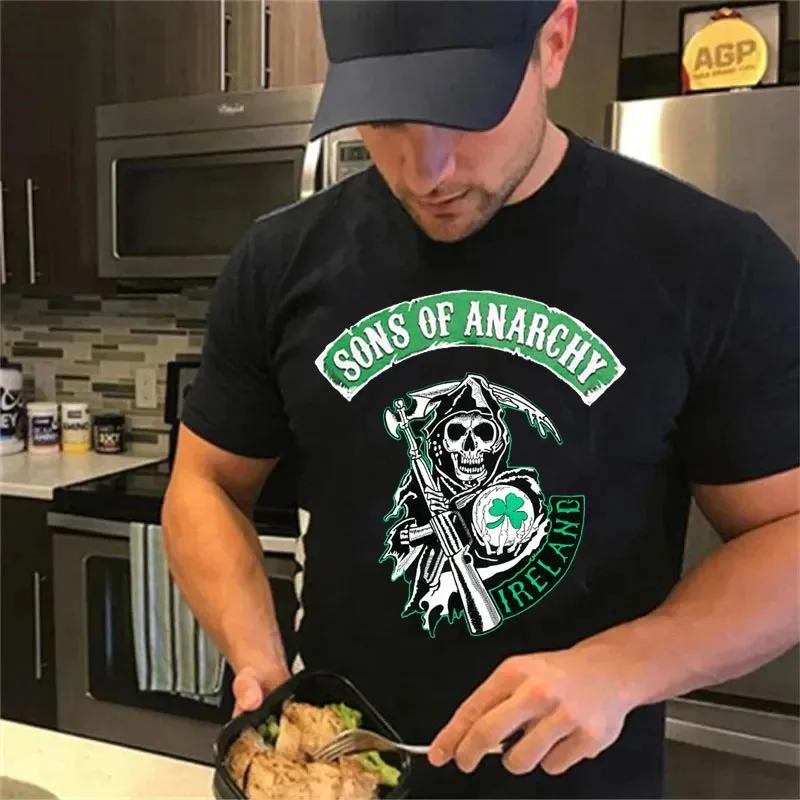 2025 Сыны Анархии Ирландия Футболка 100% хлопок Круглый вырез Летняя с коротким рукавом Повседневная Мужская футболка Футболка оверсайз Мужская одежда — купить товар онлайн с бесплатной доставкой по всему миру!