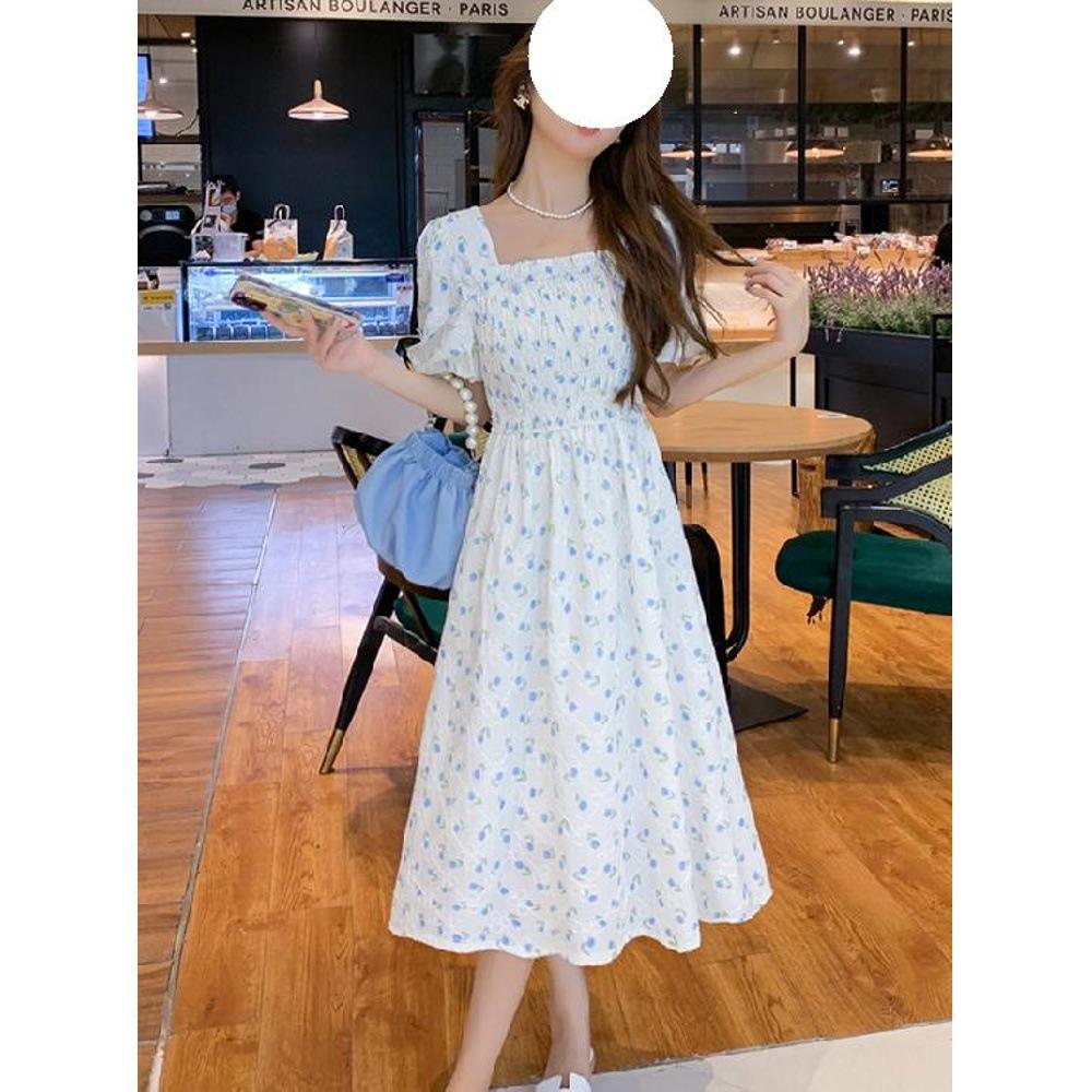 Платье с цветочным принтом и квадратным вырезом, летнее новое, в стиле мори-гёрл, легкое, тонкое, юбка средней длины, новое