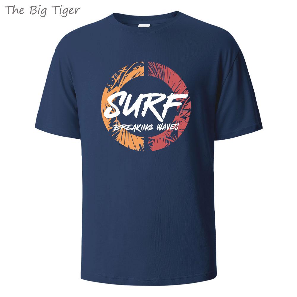 Surf Summer Printing Classic Cotton Tee Simple Round Neck Design Breathable Fabric Unisex Short Sleeve Top Men T-Shirt