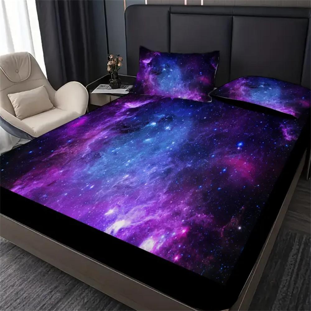 Набор простыней с ярким фиолетовым галактическим космическим звездным авиационным туманностью принтом - Мягкий, дышащий, удобный, с глубоким карманом для матраса