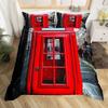 Британская городская архитектура Постельный комплект Винтажная городская телефонная будка Мягкий полиэстер Комплект пододеяльника для роскошного украшения спальни