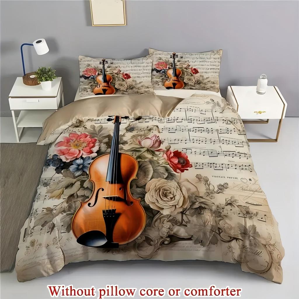 Скрипичный нотный стан Роза 3D-принт Постельное белье Наволочка Искусство классической музыки Ретро стиль Пододеяльник Домашний текстиль Комплект пододеяльника