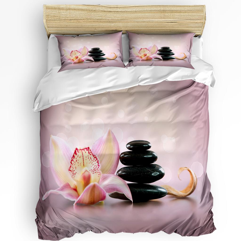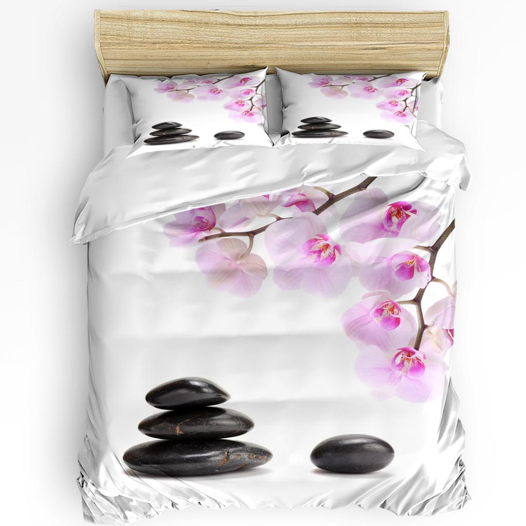 3 предмета Постельное белье Цветок Камень Розовая Орхидея Отражение Домашний Текстиль Пододеяльник Наволочка Мальчик Ребенок Подросток Девочка Комплект Покрывал