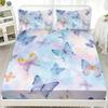 3D Бабочка Односпальная Простыня на Резинке Синие Принтованные Простыни 30 см Глубиной Простыни на Резинке Мягкий Набор Постельного Белья из Микрофибры с Наволочкой