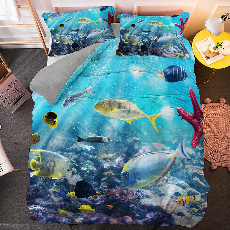 Синий Океан Король Королева Пододеяльник Мультяшная Морская Звезда Ракушка Постельный Комплект Для Детей Подростков Взрослых Море Пляж 2/3шт Полиэстер Пододеяльник