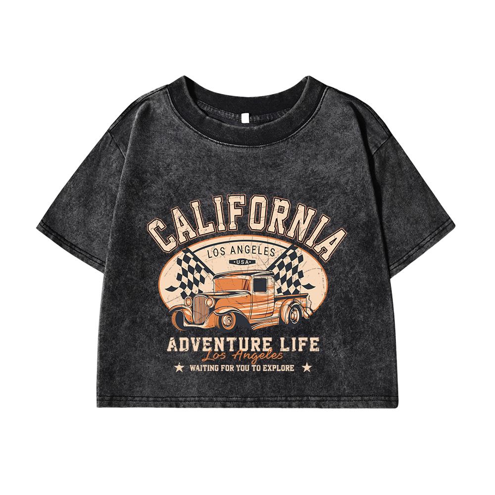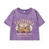 Женские хлопковые кроп-топы тренд O-образный вырез потертые выстиранные футболки принт Калифорния Лос-Анджелес уличная одежда
