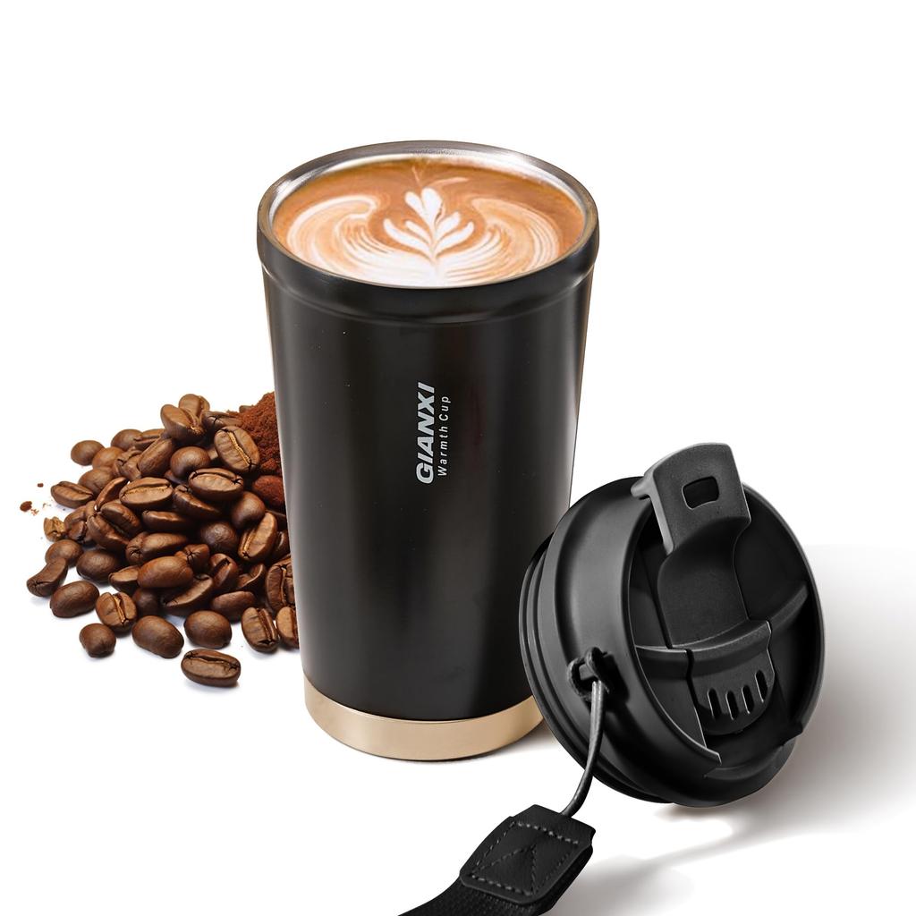 GIANXI Coffee Tumbler with Coffee Water Vacuum Stainless Easy to Easy to Black Lid, Cup, Bottle, 410ml, Cold/Hot, Simple, Insulated, Steel, Carry,