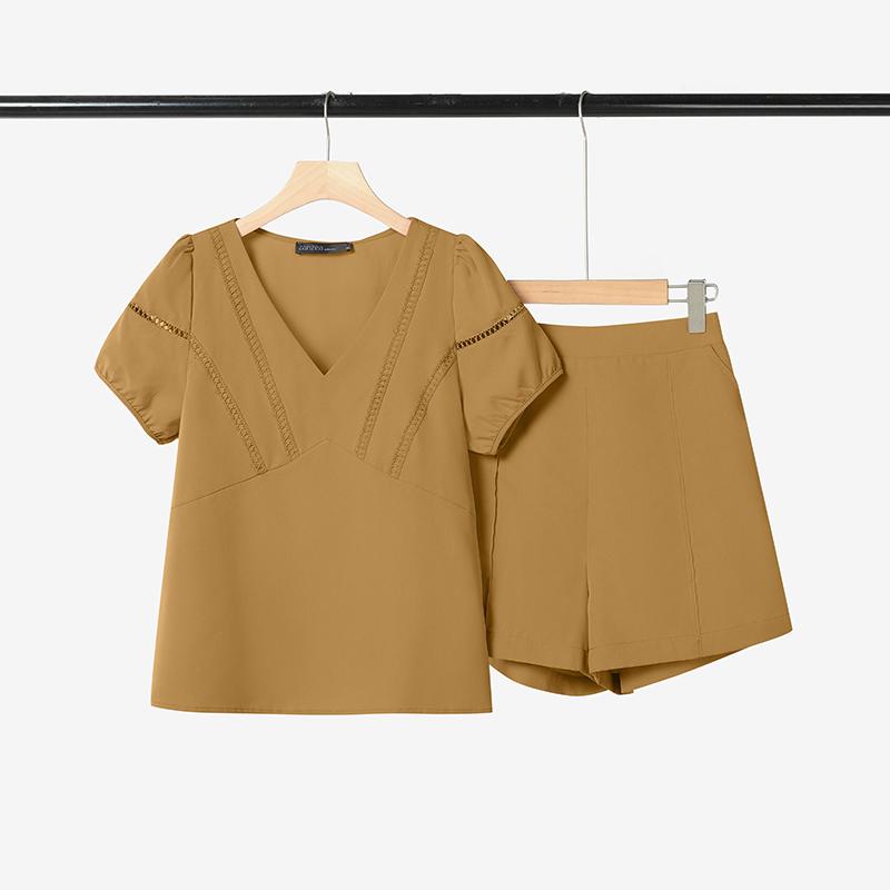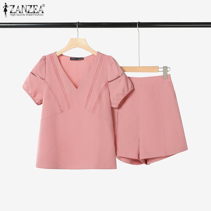 ZANZEA Женский летний комплект из двух частей: блузка с коротким рукавом и шорты