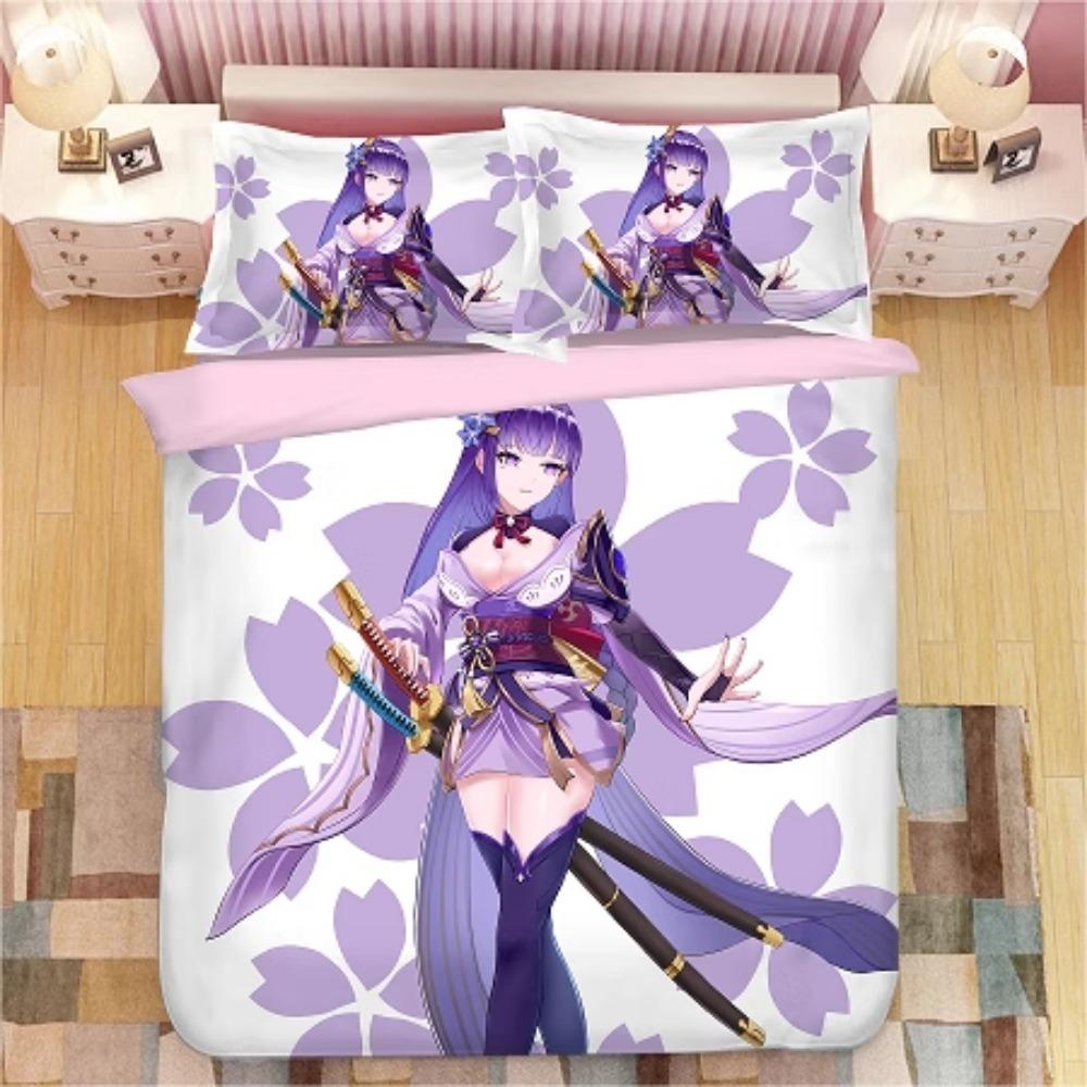Аниме-персонаж, Наборы постельного белья из микрофибры, Детское постельное белье на молнии, Декор комнаты, Пододеяльник для подростков, взрослых, Фиолетовый‘