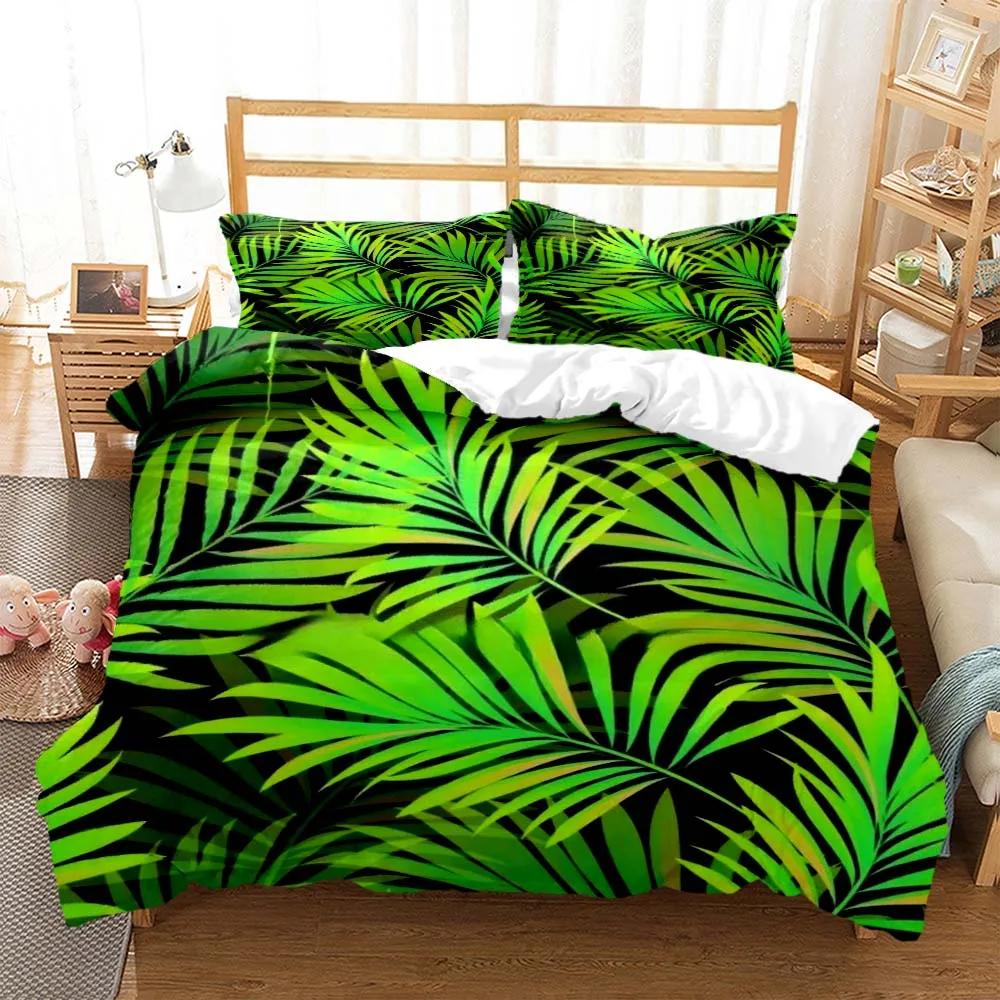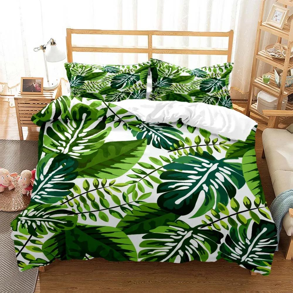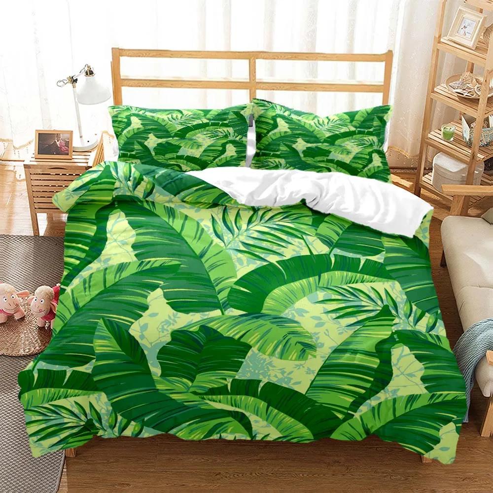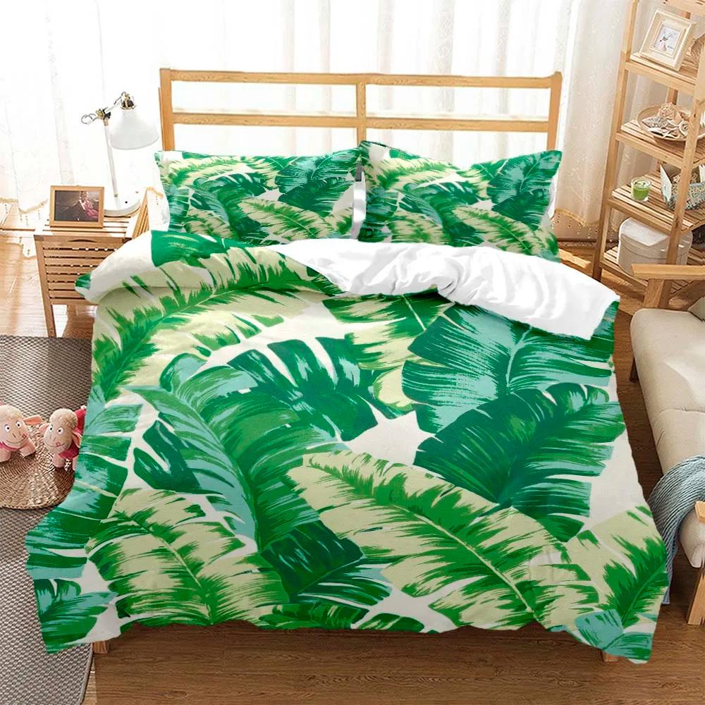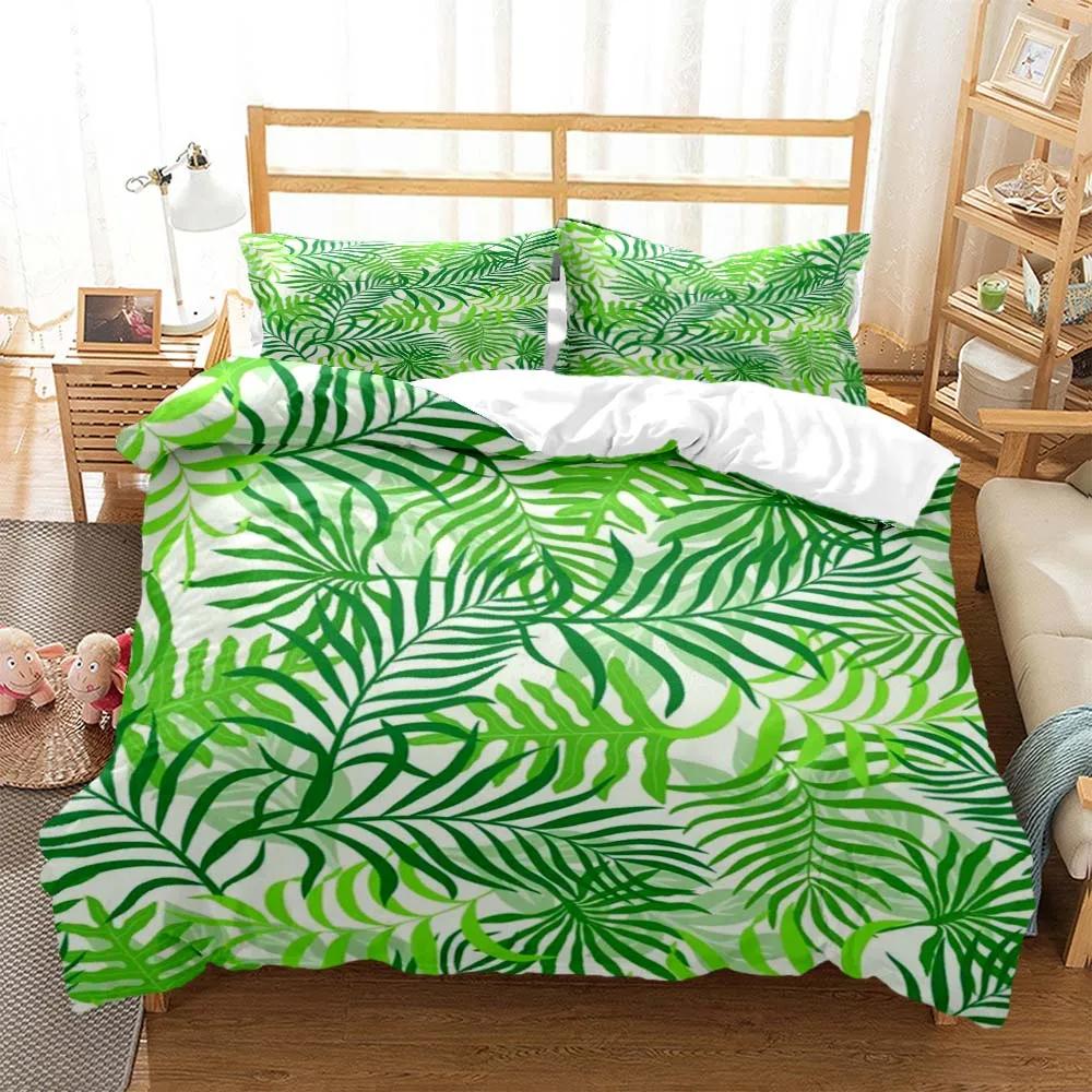 Минималистичный принт свежих зеленых листьев Пододеяльник Наволочка Комплект постельного белья размера Queen Комплект постельного белья Роскошный Настраиваемый Комплект постельного белья