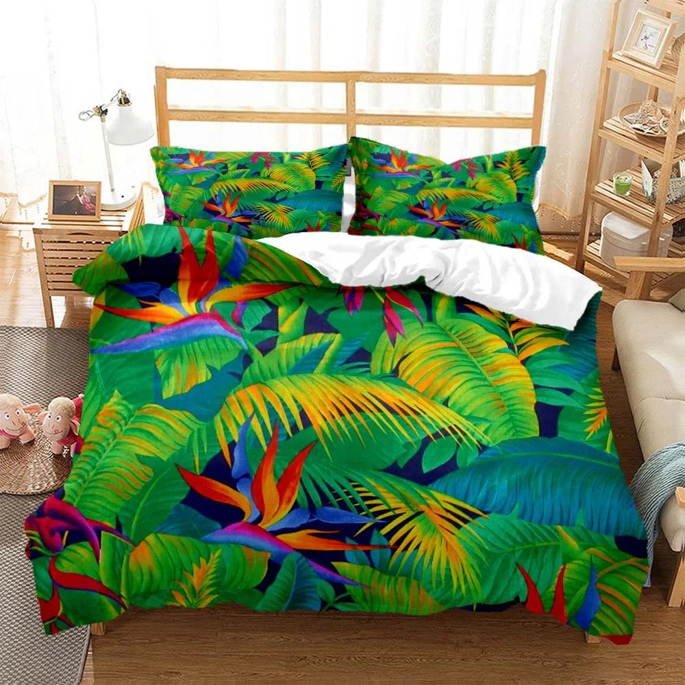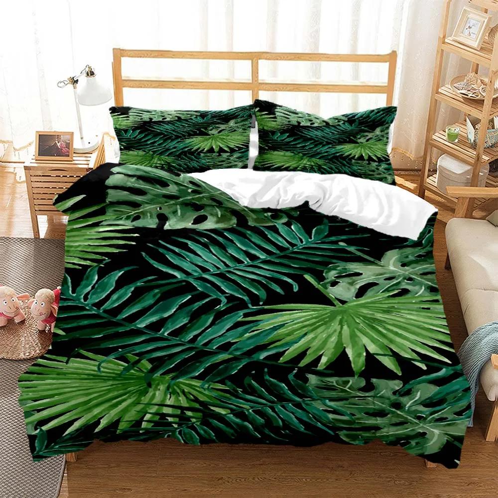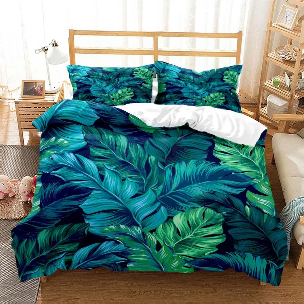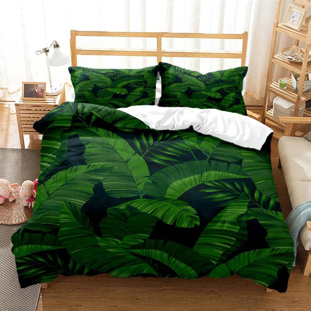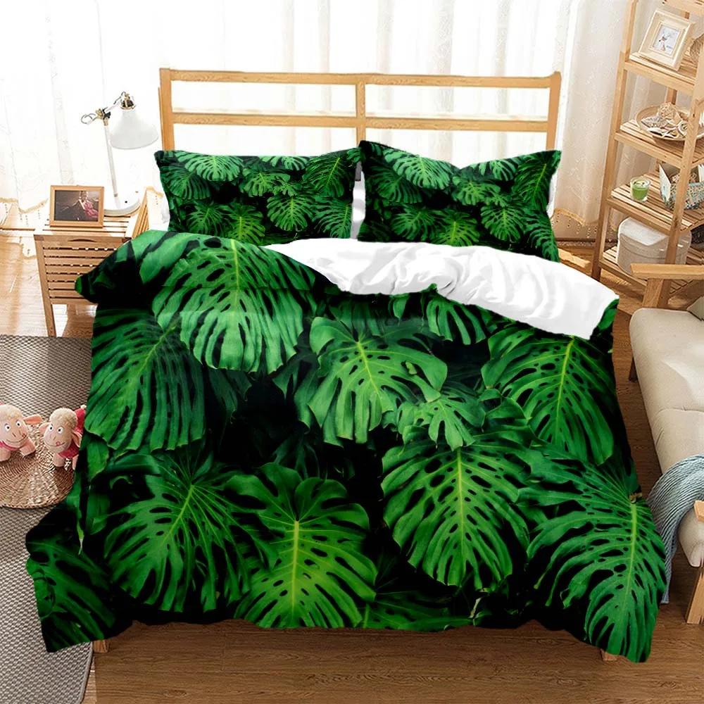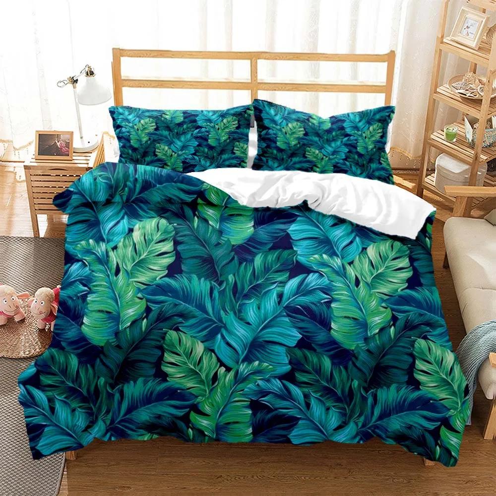 Минималистичный принт свежих зеленых листьев Пододеяльник Наволочка Комплект постельного белья размера Queen Комплект постельного белья Роскошный Настраиваемый Комплект постельного белья