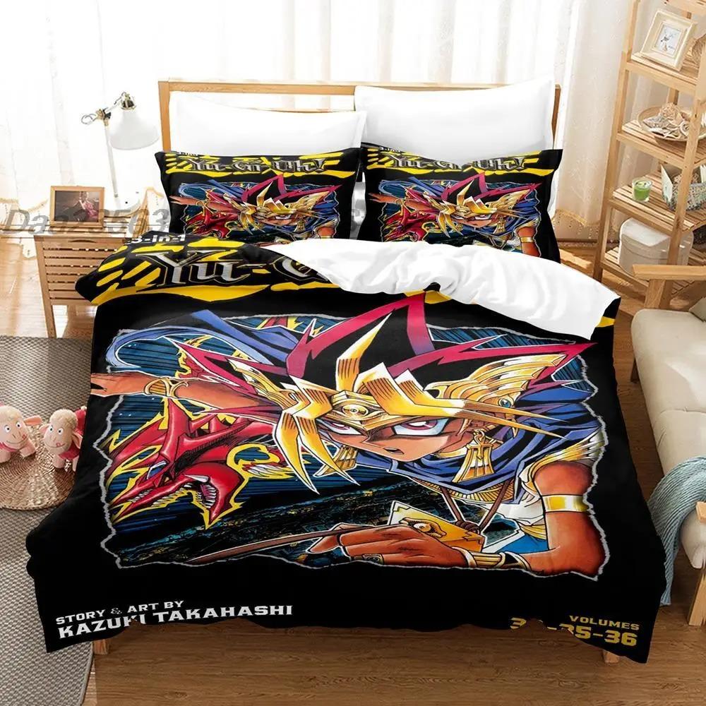Yu Gi Oh Постельное белье односпальное, двуспальное, двуспальное, двуспальное, комплект постельного белья для мальчиков, пододеяльники, наборы с 3D-принтом, аниме, каваи