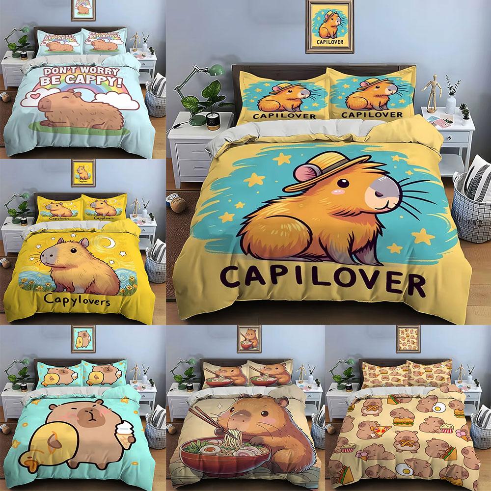 Мультяшные комплекты постельного белья с капибарой, стеганое покрывало, пододеяльник, наволочка, наборы из 2-3 предметов, декор для спальни ребенка или взрослого, подарки