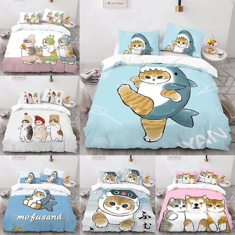 Mofusand Аниме Акула Кровать Постельные Комплекты Одеяло Пододеяльник Наволочка 2-3 Предмета Комнатный Декор Подарки