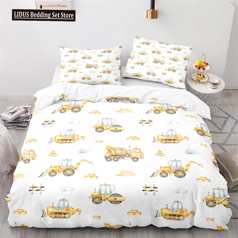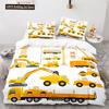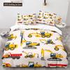 Комплект пододеяльника Digger Мультяшный Грузовик Тяжелой Техники Кран Бетономешалка Экскаватор Трактор Узор Для Ребенка Подростка Полиэстеровый Постельный Комплект