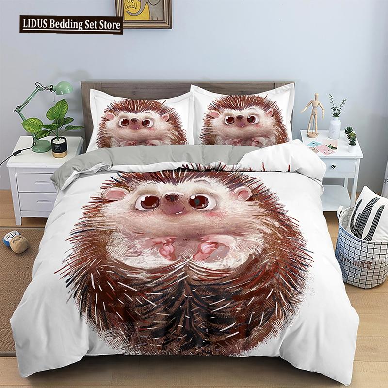 Hedgehog Bedding Set Cute Kawaii Wildlife Comforter Cover With Pillowcases For Kids Boys Girl Polyester Bedding Set King Size — купить товар онлайн с бесплатной доставкой по всему миру!