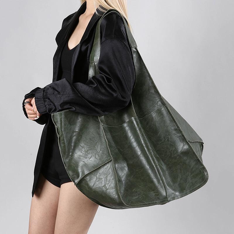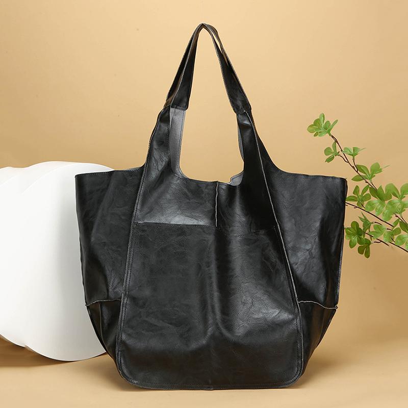 Ретро Супер Большая Сумка Через Плечо Женская Однотонная Сумка-Тоут из Мягкой Кожи Повседневная Сумка-Шоппер Под Мышку