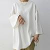 Женская однотонная футболка с круглым вырезом, свободного кроя, простая, с разрезами, с длинным рукавом, большого размера