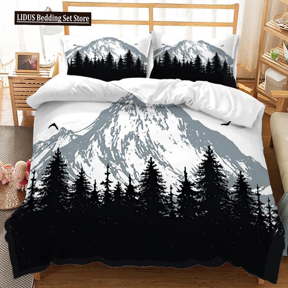 Комплект пододеяльника 3D Горный лес Тема зимней снежной горы Размер кинг-сайз/европейский кинг-сайз Чехол для одеяла для детей-подростков Полиэстеровый комплект постельного белья