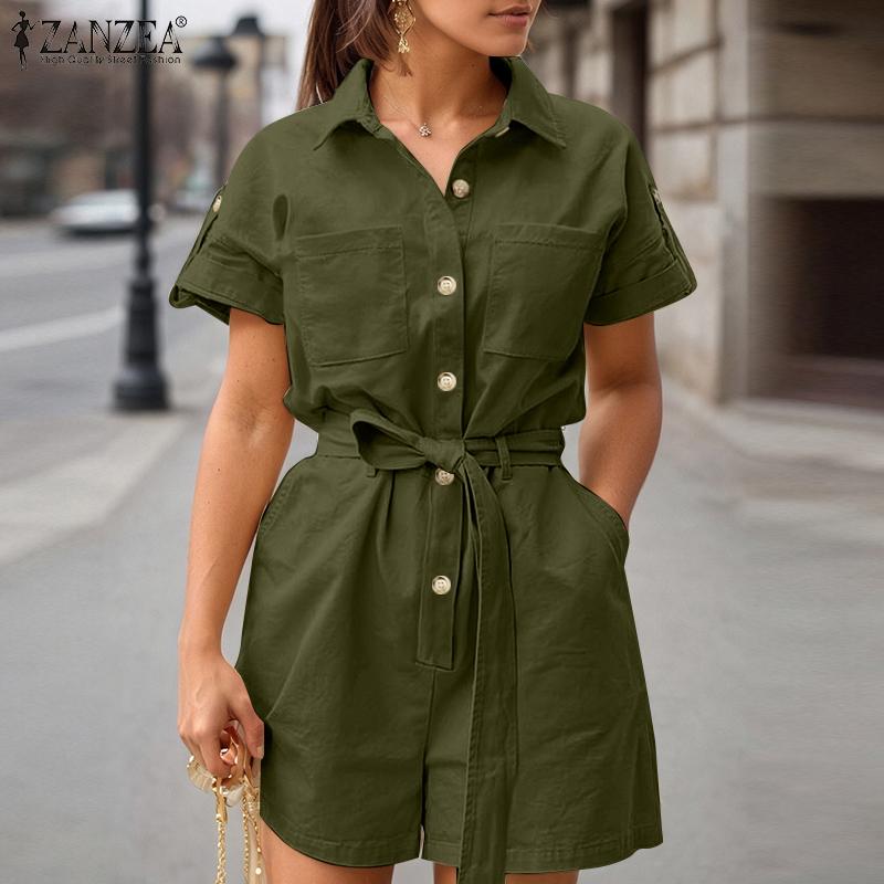 ZANZEA Женские повседневные комбинезоны с отложным воротником, летние, с коротким рукавом — купить товар онлайн с бесплатной доставкой по всему миру!