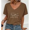 Fashion Simplified Letters Painting Blouses Short Sleeved V-Neck T Shirts Casual — купить товар онлайн с бесплатной доставкой по всему миру!