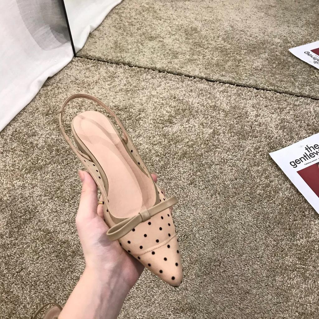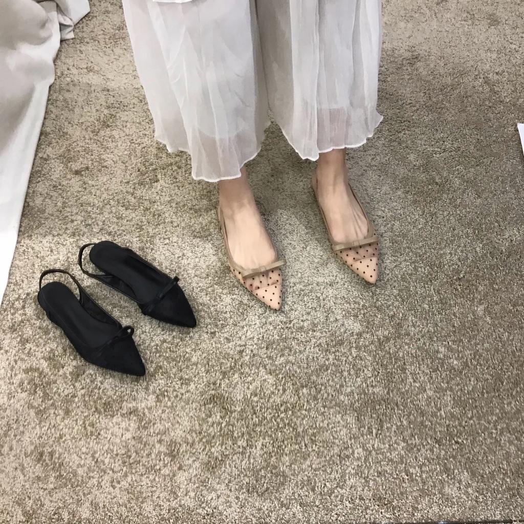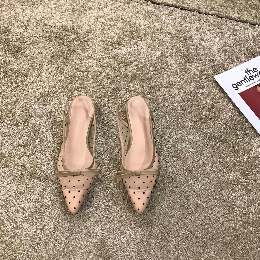 Босоножки Женские Плоские Baotou 2025 Сетчатые Дышащие Бант Sandalias Мода Лето Низкий Каблук Остроносые Туфли Женские Chaussure Femme