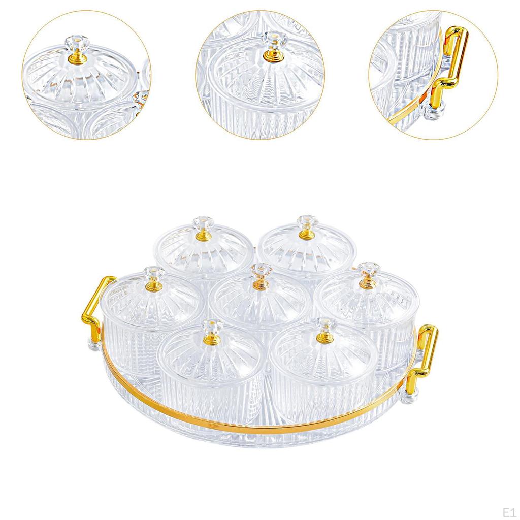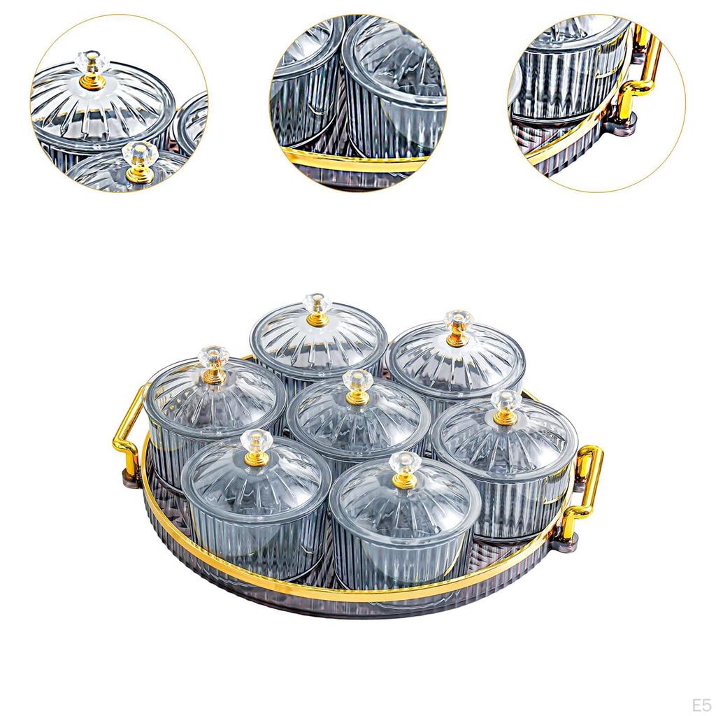 Поднос для сервировки с 7 отделениями для закусок с прозрачными крышками и мисками
