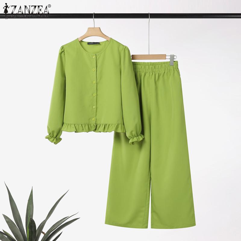ZANZEA Женский повседневный костюм из двух частей с длинным рукавом и брюками