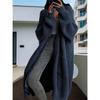 Длинный свободный свитер женский осенне-зимний вязаный кардиган на пуговицах с длинным рукавом
