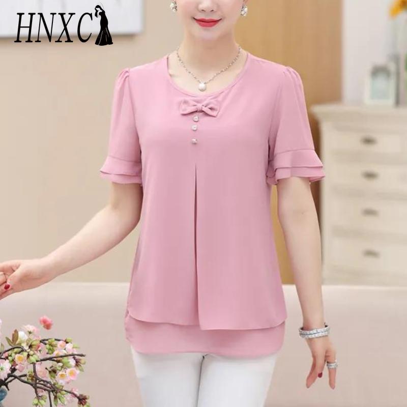 HNXC Женские модные повседневные однотонные блузки и рубашки с коротким рукавом и круглым вырезом с принтом