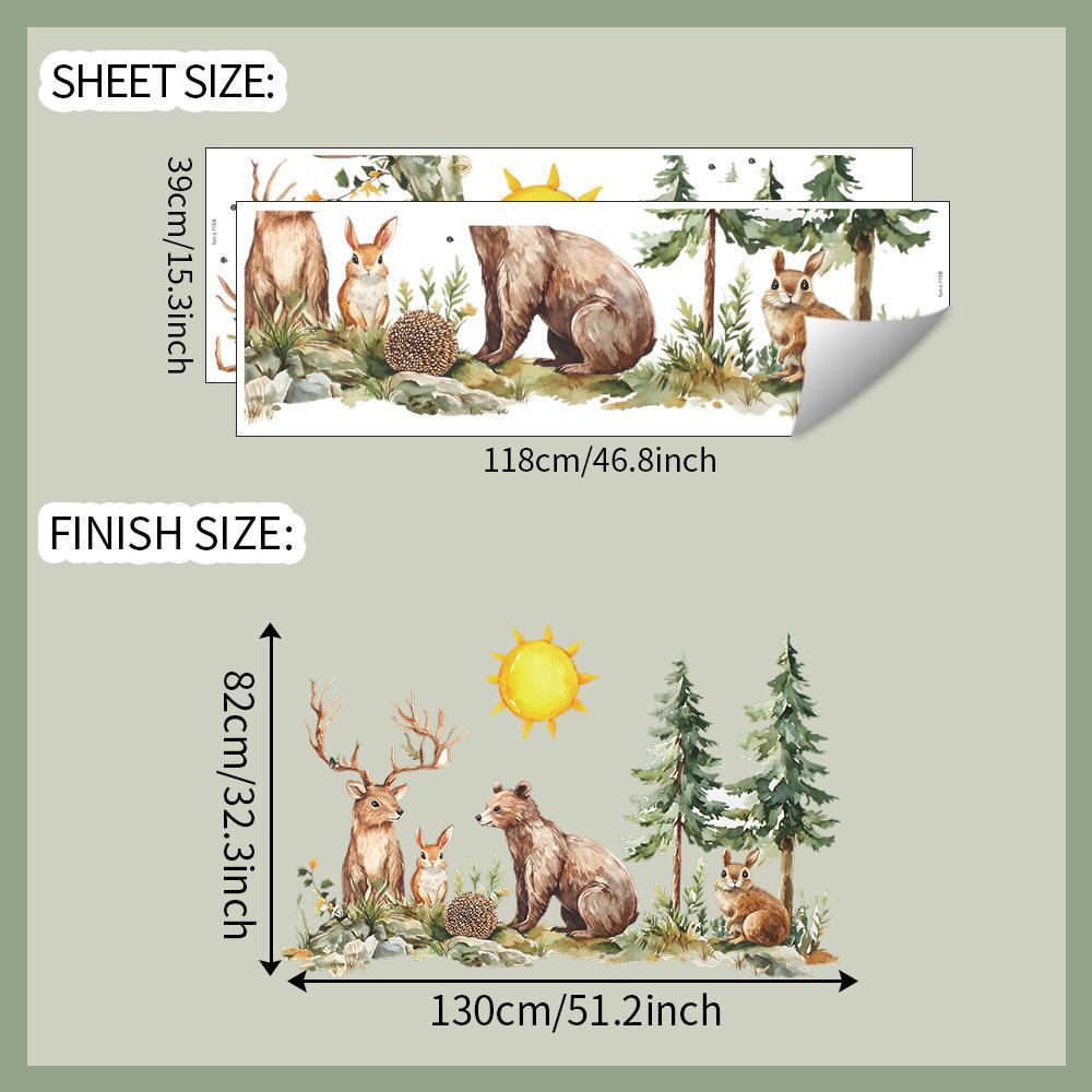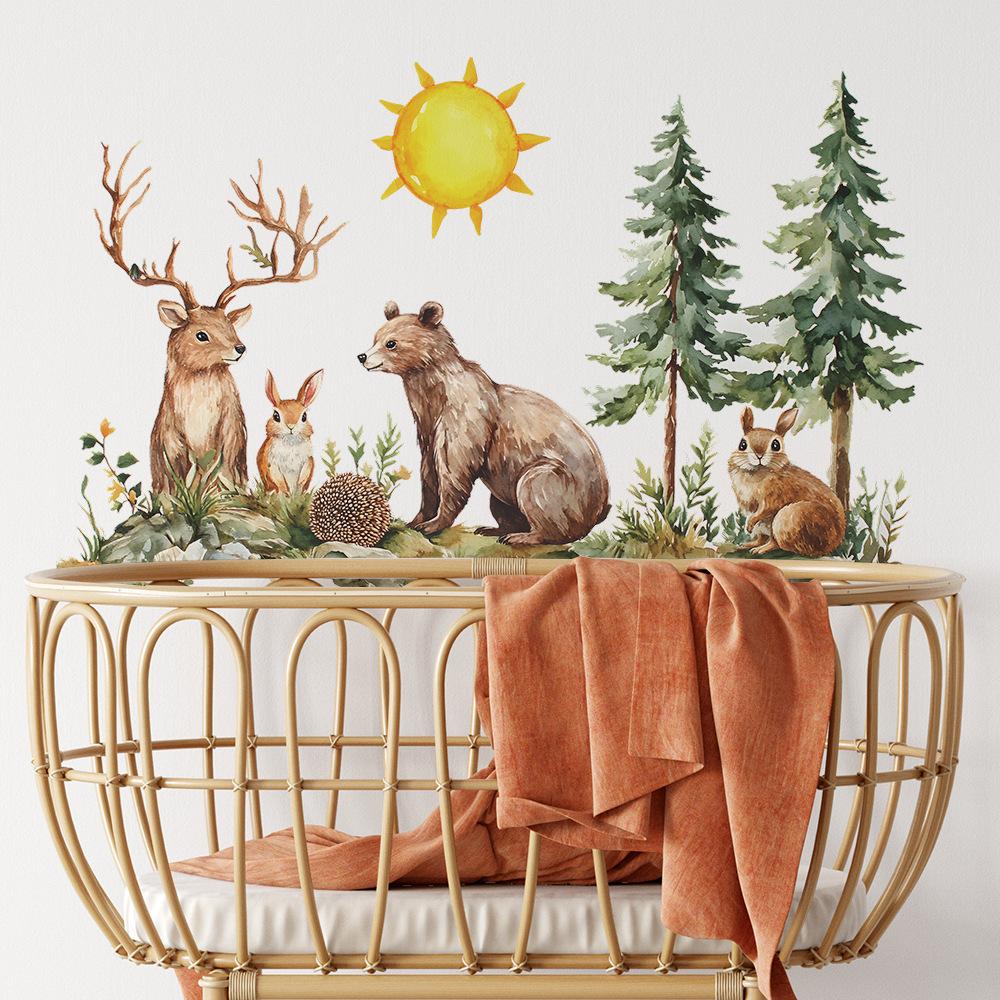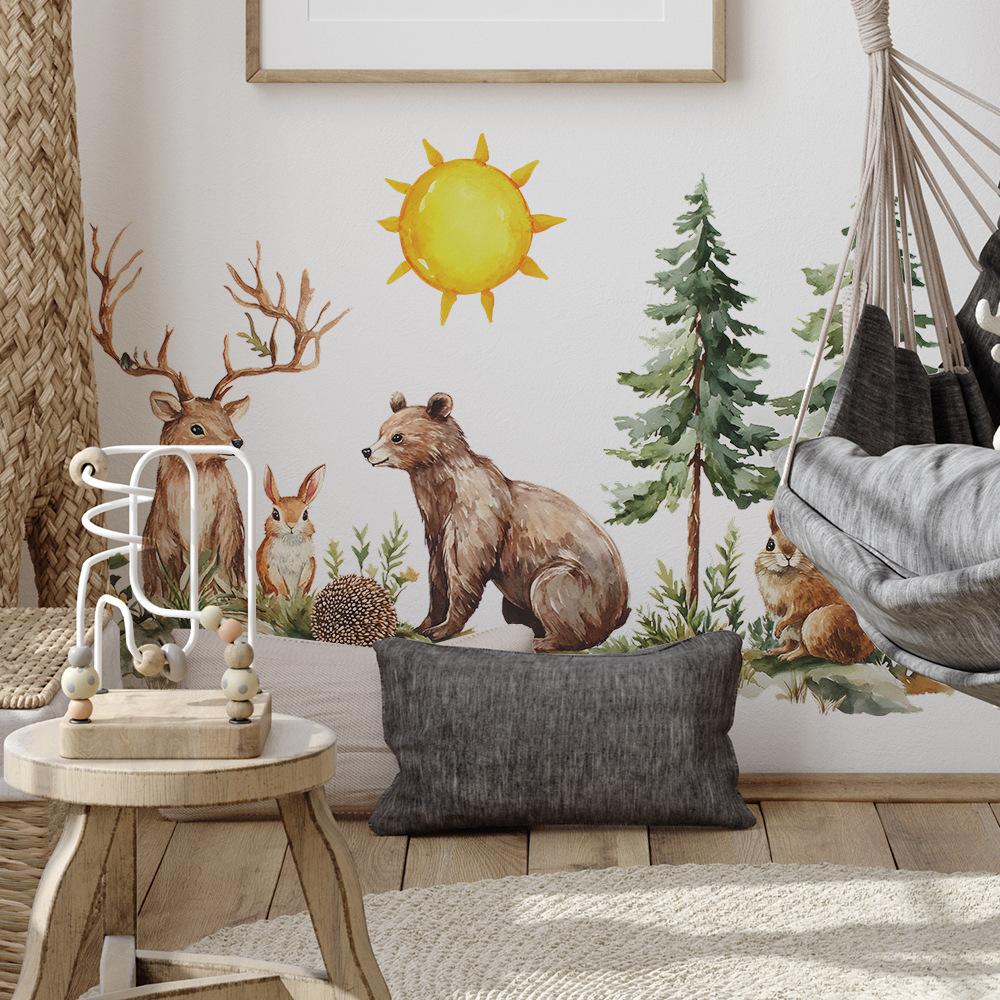 Акварельные Мультяшные Животные Лес Спальня Кабинет Фон Украшение Наклейки на Стену