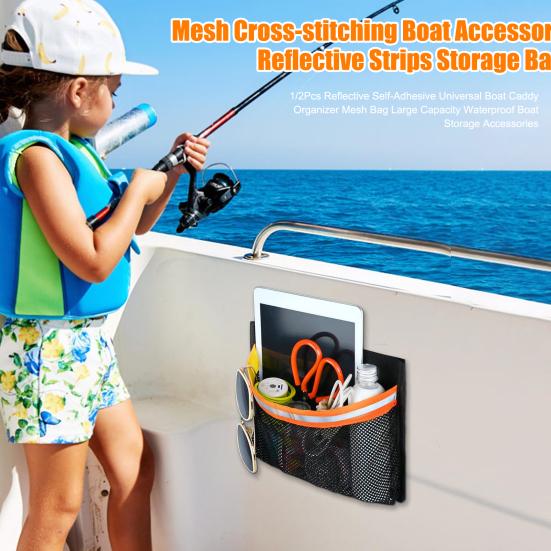 1/2 шт. Светоотражающий самоклеящийся универсальный органайзер-сетка для лодки, большой вместимости, водонепроницаемые аксессуары для хранения лодки