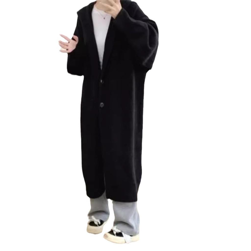 Кардиган большого размера простой и универсальный ленивый стиль мягкий восковой средней длины куртка-свитер с капюшоном женские новые осенне-зимние модели
