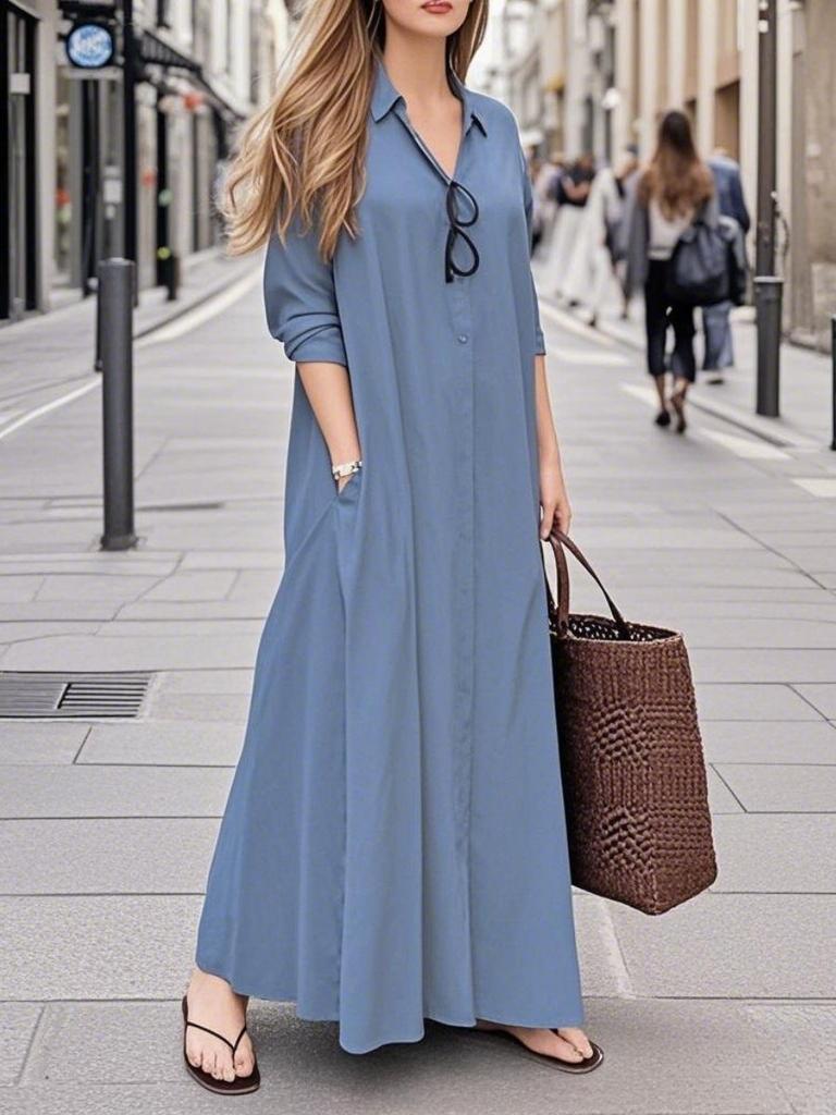 Женские свободные повседневные длинные платья-рубашки с лацканами и длинными рукавами — купить товар онлайн с бесплатной доставкой по всему миру!