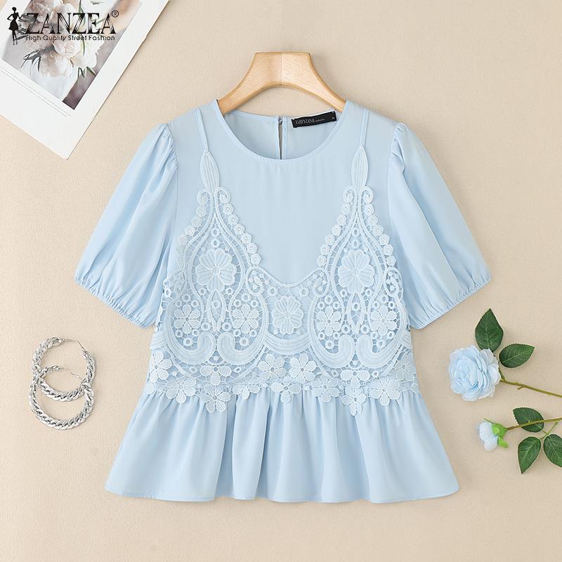 ZANZEA Женские повседневные футболки с круглым вырезом, летние, с коротким рукавом, с вязаным крючком пэчворком — купить товар онлайн с бесплатной доставкой по всему миру!