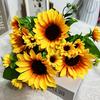 Яркий букет из 13 искусственных подсолнухов с темно-коричневыми сердцевинами и зеленой листвой - Идеально подходит для домашнего декора, свадеб