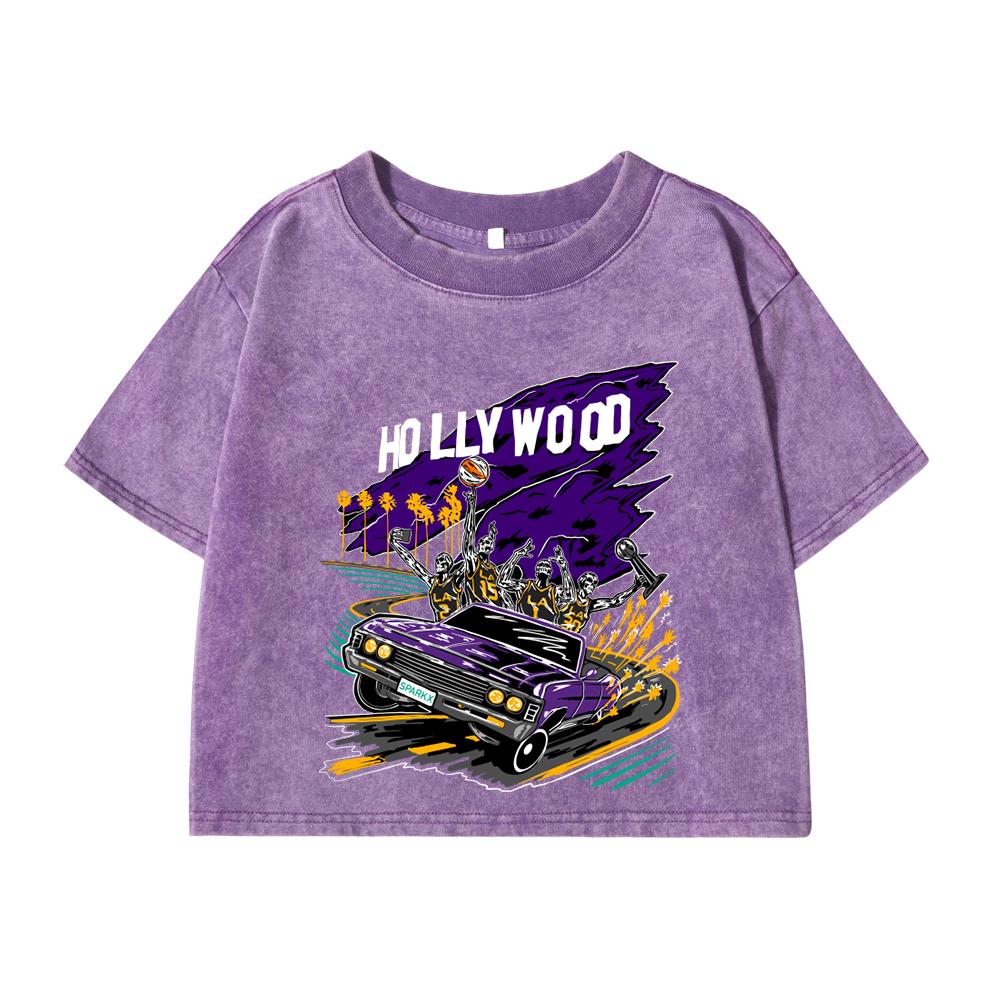 Женская хлопковая выстиранная футболка трендовая обычного кроя с круглым вырезом, укороченные топы, празднующие победу, с детальной печатью, с коротким рукавом
